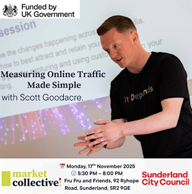 Want to understand how people find and interact with your business online? Join this practical workshop with Scott Goodacre. Monday 17 November 5:30 - 8pm, FRU FRU & FRIENDS, 92 Ryhope Road, Sunderland, SR2 9QE.